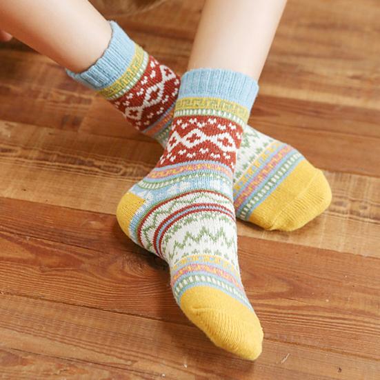 5 Pairs Winter Warm Crew Socks for Women Thick Mid-Calf Knitted Socks Retro Ethnic Style Socks for Christmas Gifts — buy online with free worldwide shipping!