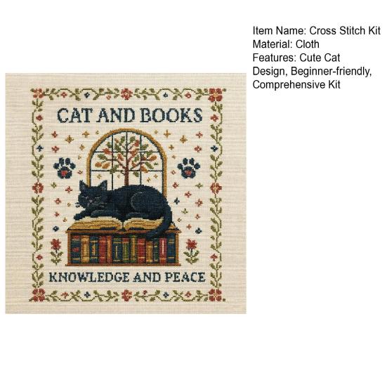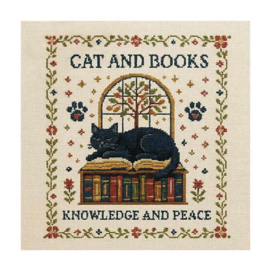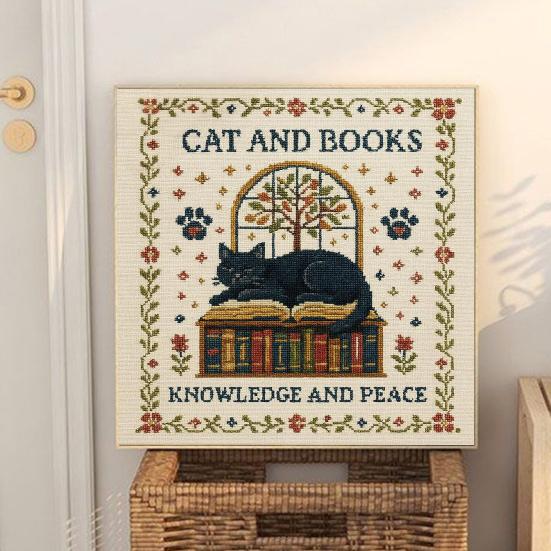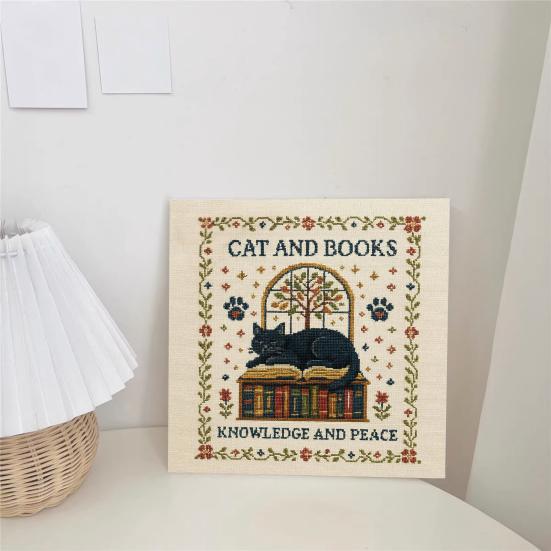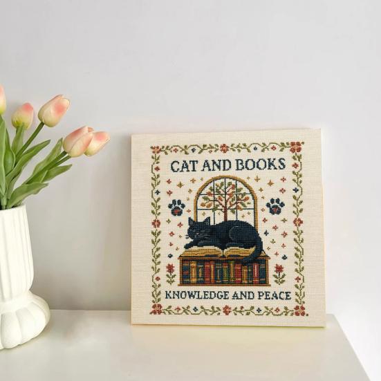 Charming Embroidered Design: Elevate your space with a delightful kitten and book-themed cross-stitch pattern, adding a touch of whimsy to any room. Perfect for displaying in the living room, bedroom, or study, this design exudes warmth and charm, making it a proud centerpiece or thoughtful gift.