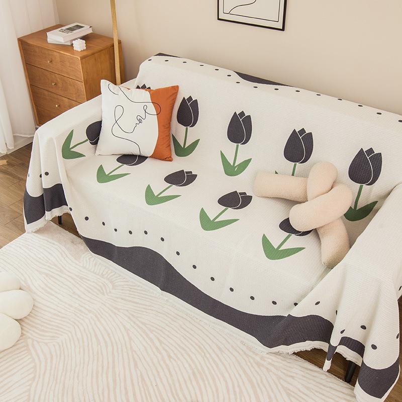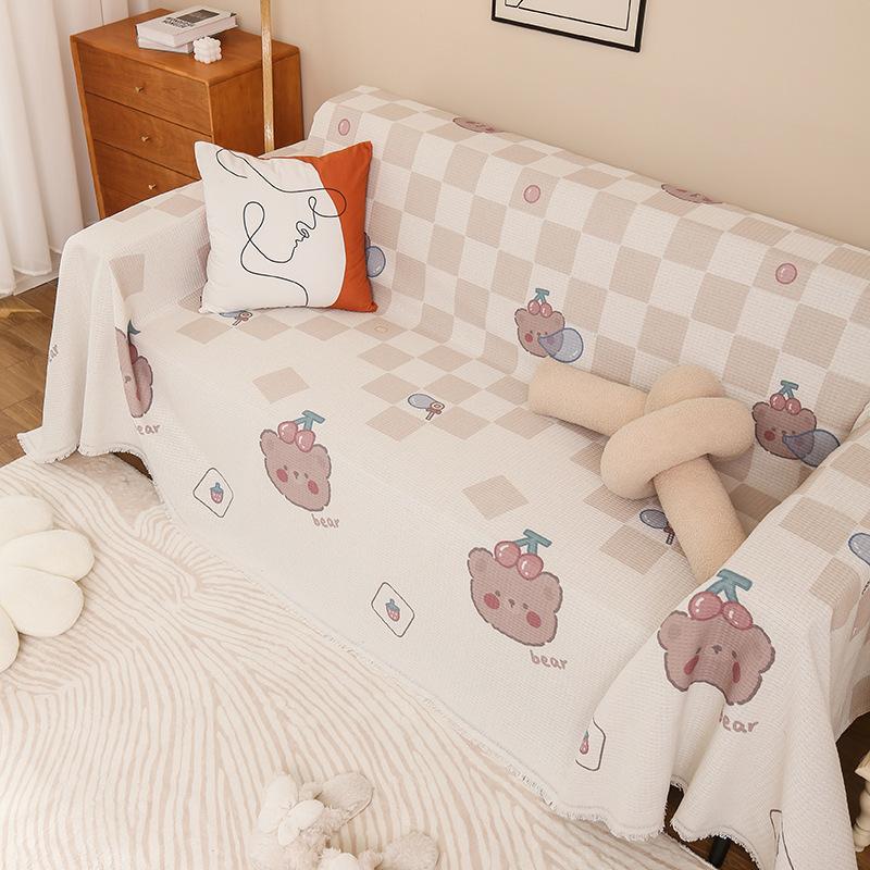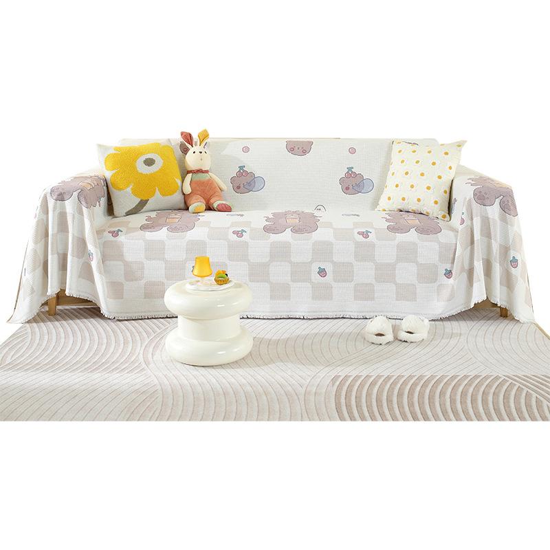 INS Style Sofa Cover Towel Cute Cartoon One-Piece Sofa Cushion Blanket Cover Cloth Four Seasons Universal All-Inclusive Sofa Cover