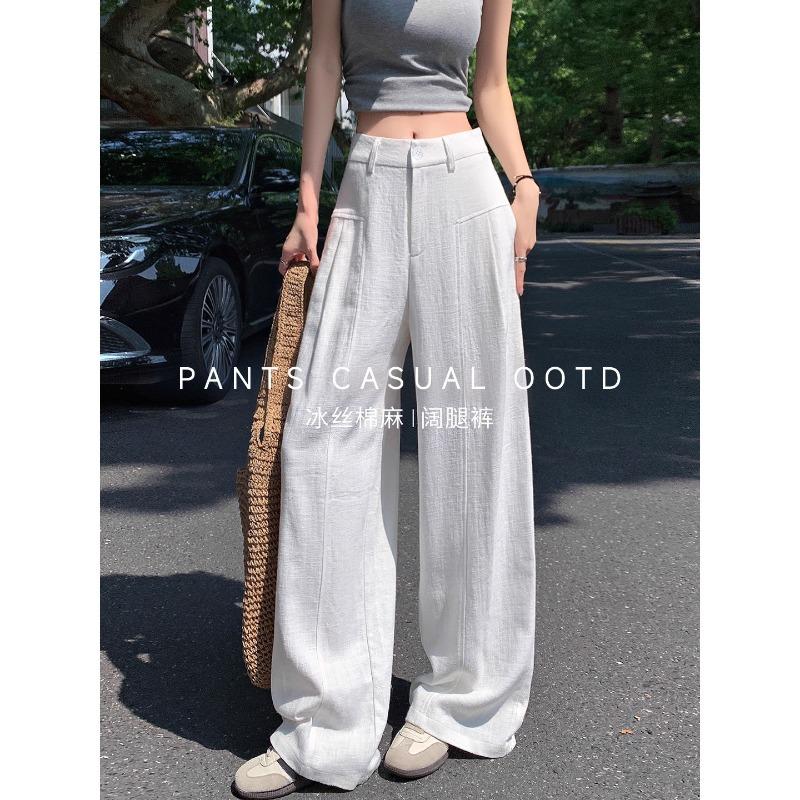 Linen wide-leg pants women's summer thin new cotton and linen casual drape suit pants old money style white pants — buy online with free worldwide shipping!