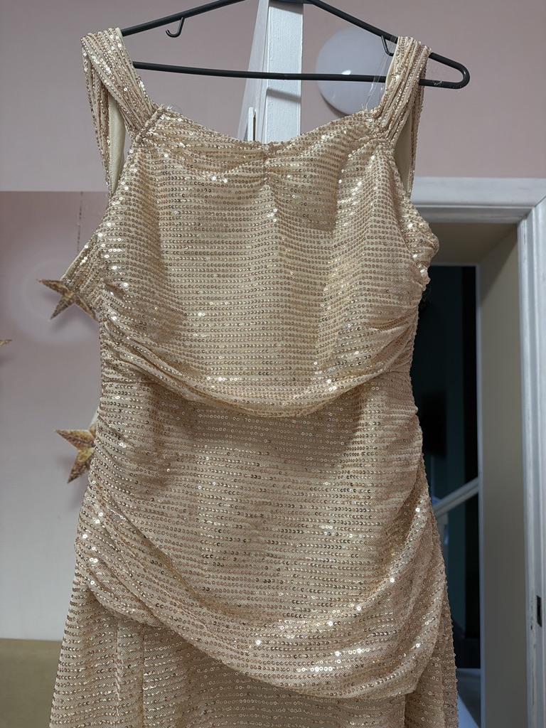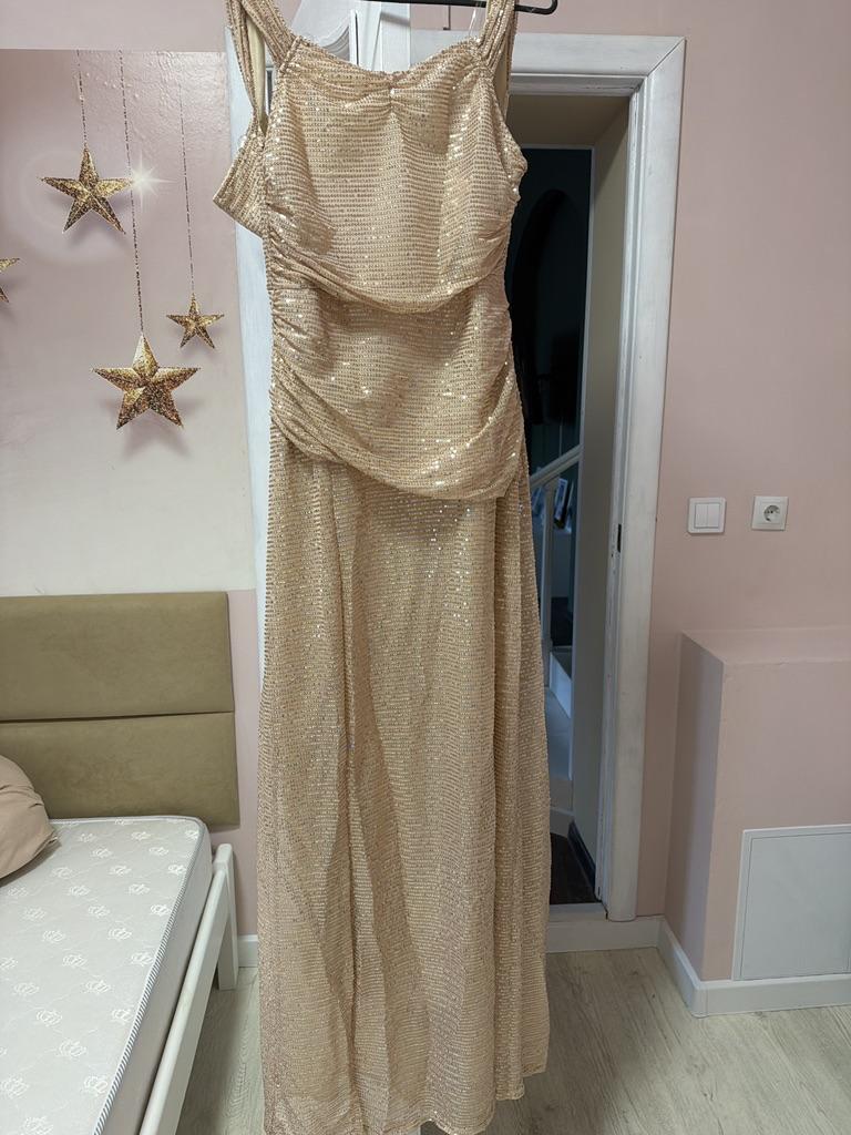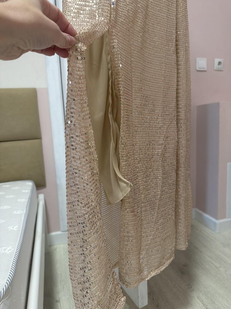 This elegant evening gown is crafted from high-quality polyester, featuring a casual yet flattering design. The soft and lightweight fabric ensures comfort all day long. The dress accentuates your body proportions, elongating your legs with its sequin detailing for an elegant and eye-catching look.