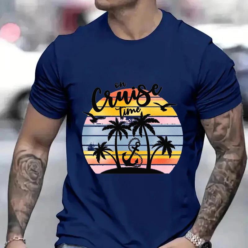 On Cruise Time Print T-shirt for Men Cruise Shirt with Trees Summer Cruising Tshirts Family Vacation Tees Friends Travel Tops — buy online with free worldwide shipping!