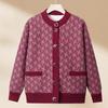 Mom Winter Knitted Sweater Medium and Old Women's Cardigan Winter Top Elderly Grandma Pocket Casual Sweater