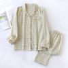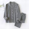 Spring/Summer Couple Pajama Set Cotton Double Layer Gauze Men's and Women's Japanese Plaid Set Long Sleeved