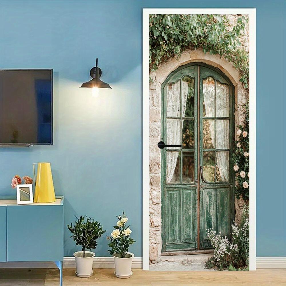 Rustic Green Wallpaper Self Adhesive Door Mural Removable Vinyl Home Decor Art Decal Wooden Scenery Wall Poster Stickers Porte Deursticker
