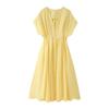 Summer New Product Women's Clothes Cotton Blend V Neck Short Sleeve Pleated Trim Midi Skirt Dress 2965260 2965278