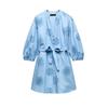 Spring New V Neck Puffy Long Sleeves with Belt Adhesive Embroider Decorative Poplin Dress 2492058