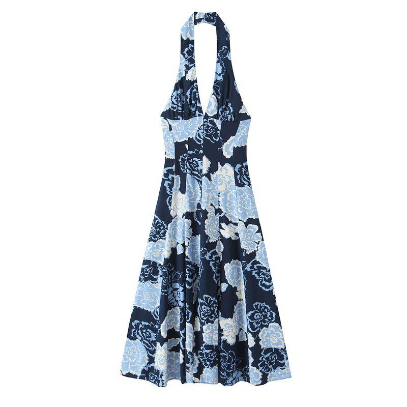 Kaslead New Women Clothes Western Style Print Neck Collar Midi Dress 8173555