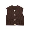 Kaslead New Women Clothes Western Style Fashion Simple and Versatile Twist Gold Button Thick Needle Vest