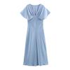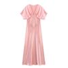 Kaslead New Arrival Women's Clothing Fashion Style Silk Satin Texture Elegant Short Sleeve Midi Skirt Dress 2330399