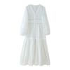 Summer New Product Women's Clothes Minimalist Style Cut Out Lace Decoration V Neck Long Sleeves Loose High Waist a Word Length Dress