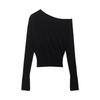 Kaslead New Women Clothes Western Style Fashion Slimming Versatile Sloping Shoulder off-Neck Split Sweater
