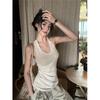 Kumikumi Niche Back Twist Apricot Vest Women Clothes Summer Retro Sexy All-Match Slimming Sleeveless Top