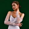 Removable Lace Long Bridal Gloves Hollow Out Transparent White Wedding Women Mesh Decoration Arm Sleeves