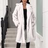 Women's Fashionable Warm Long Sleeve Solid Color Furry Long Coat With Turned Collar