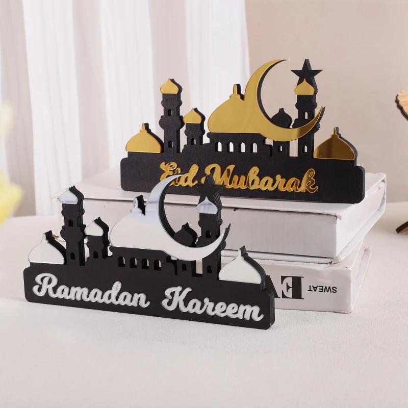 Ramadan Table Ornament Wooden Acrylic Eid Mubarak Moon Star Castle DIY Home Table Decoration Islamic Muslim Party Gifts