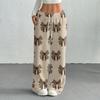Women's Casual Fashion Printed Elastic Waist Loose Straight Leg Pants With Rope