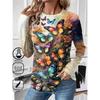 Women's T Shirt 3D Print Cat Butterfly Colorful Design Long Sleeve Daily Weekend Fashion Round Neck Regular Fit