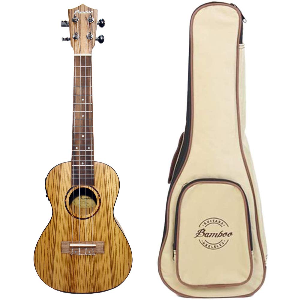 Argentine brand Bamboo presents this adorable concert-size ukulele, featuring a chromatic tuner and beautiful wood grain.