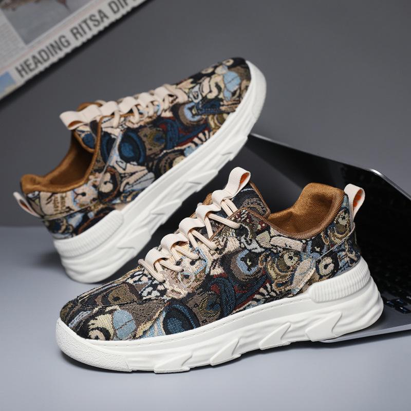 Men's Painted Canvas Platform Breathable Daddy Shoes Fashion Trend Versatile Sports Running Shoes Youth Work Shoes — buy online with free worldwide shipping!