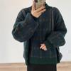 Women Thickened Retro Contrast Color Knitted Sweater Houndstooth Winter Loose Round Neck Pullover