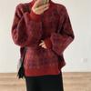 Women Thickened Retro Contrast Color Knitted Sweater Houndstooth Winter Loose Round Neck Pullover — buy online with free worldwide shipping!