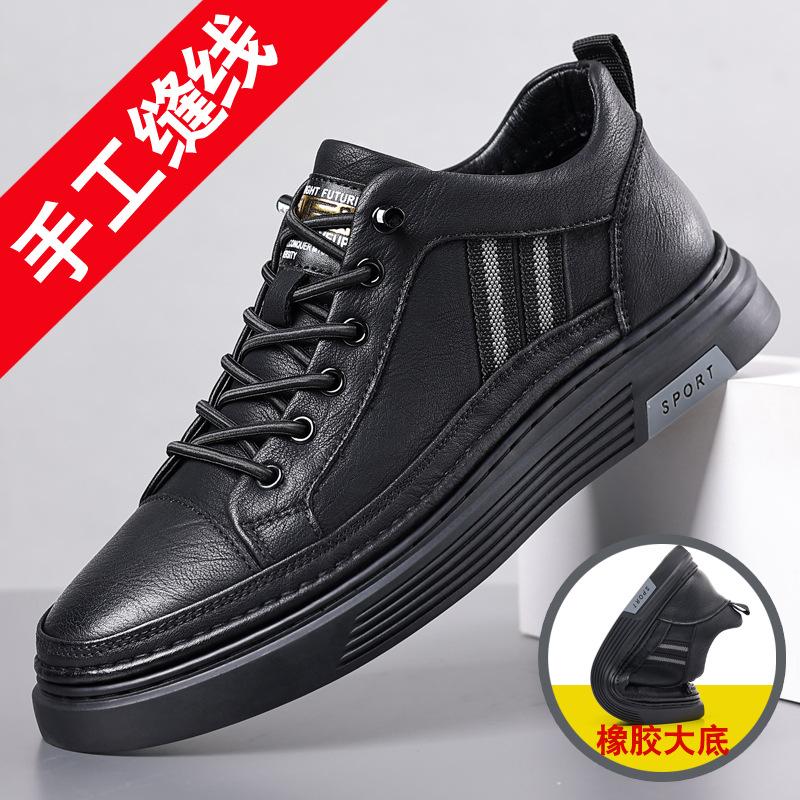 Men's Autumn Leather Shoes Trendy Soft-soled Men's Casual Shoes Winter Velvet Cotton Shoes Black Sports Versatile Board Shoes