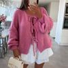 Women‘s Round Neck Long Sleeve Lace-Up Fitted Cardigan Coat — buy online with free worldwide shipping!