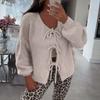 Women‘s Round Neck Long Sleeve Lace-Up Fitted Cardigan Coat
