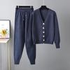 Autumn and Winter New Collar Cardigan Sweater Harlan Pants Set Solid Color Cardigan Sweater Two-piece Set