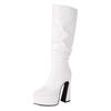 Gold Pleated Knee High Platform Boots Women Chunky Heels Sexy Silver White Croc Party Club Ladies Zipper Pointed Toe Long Boots