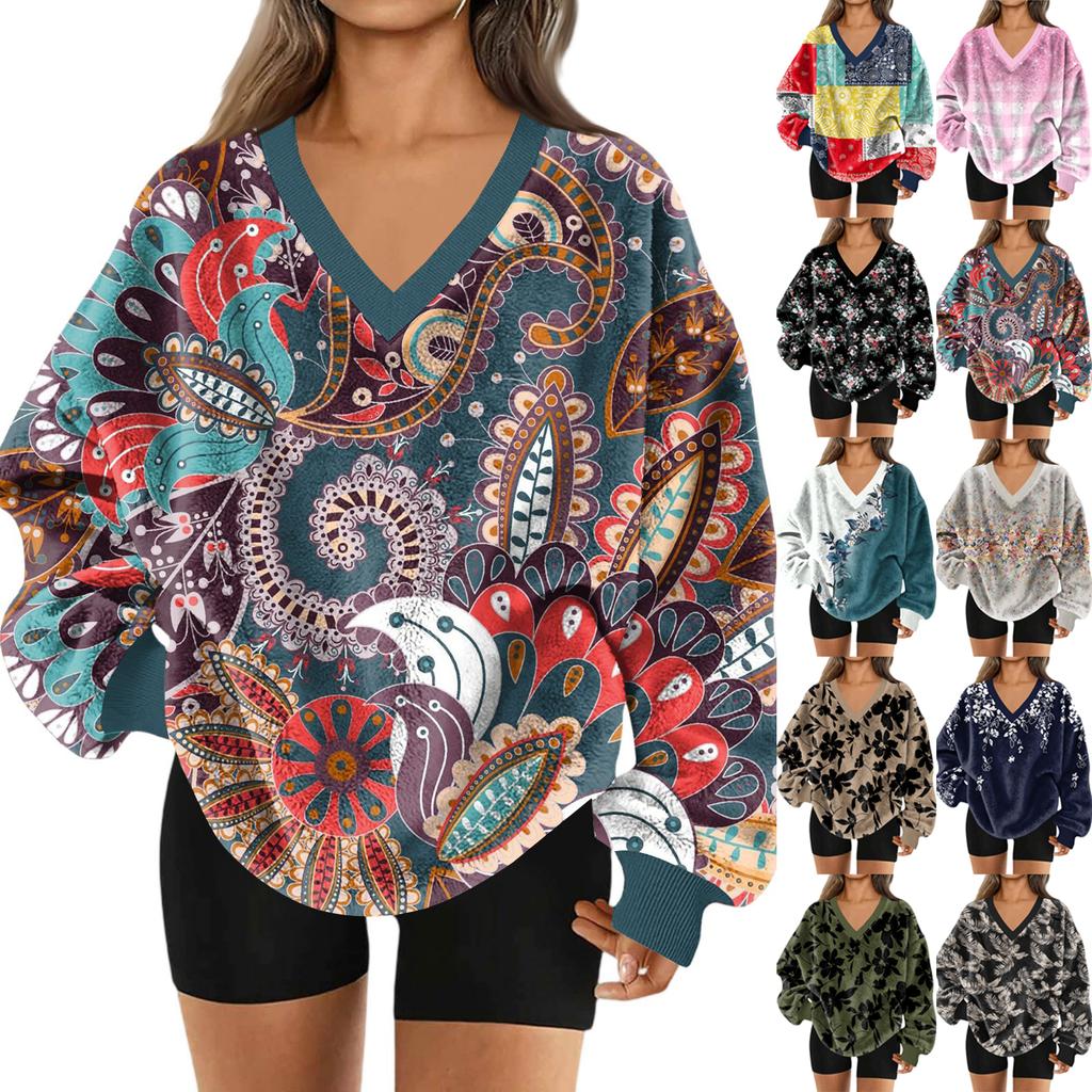 Women's V-Neck Sweatshirt Plush Solid Color Casual Fashion Long Sleeve With Pocketed Pullover Top — buy online with free worldwide shipping!