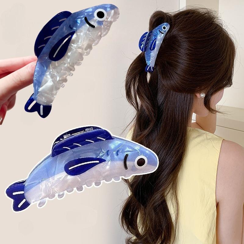 Fashion Sardines Hair Claw Clip for Women Girls Non Slip Cartoon Hairpin Acetate Print Cute Barrettes Gifts Apparel Accessories