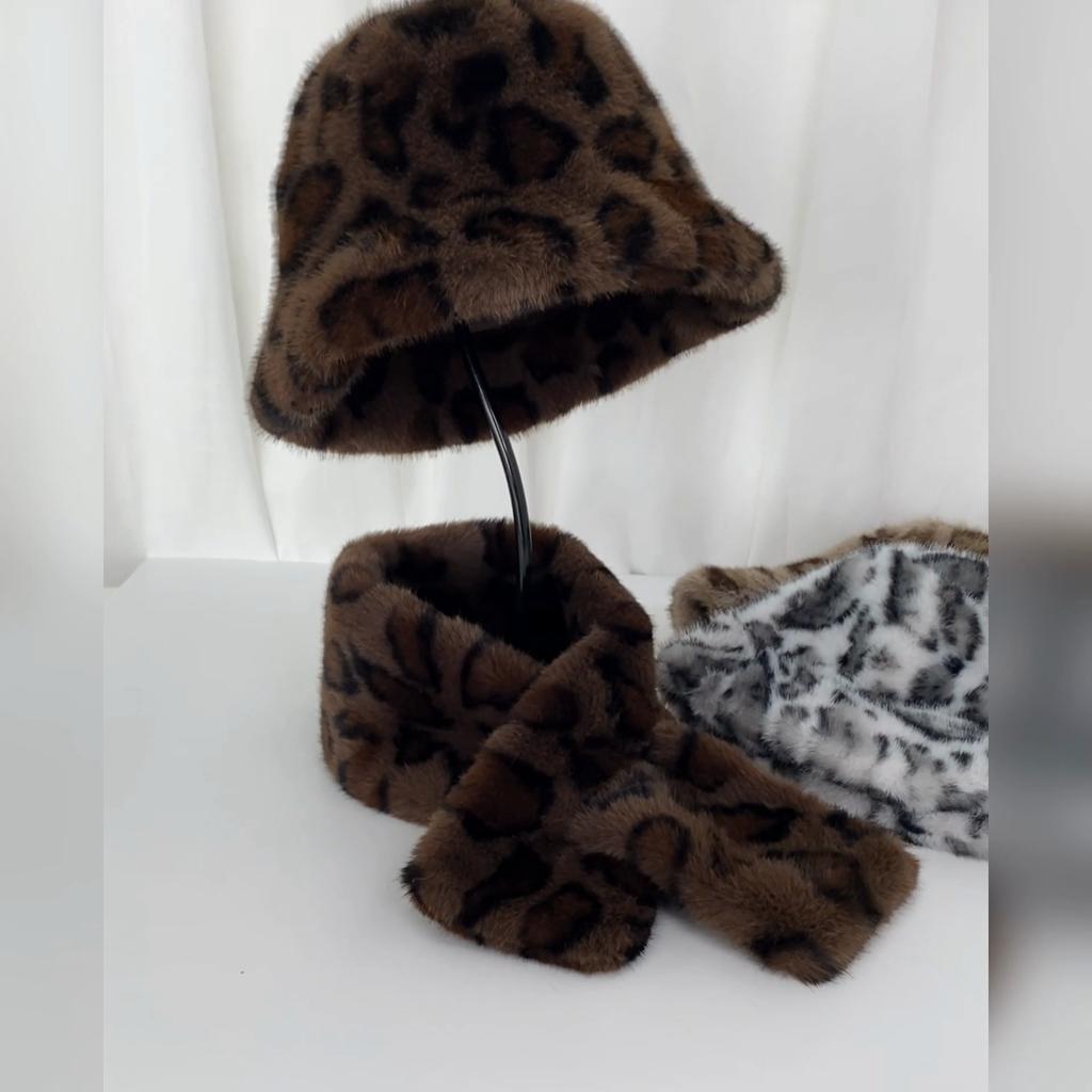 A European and American style fisherman hat set imitating mink environmentally friendly fur scarf for women in winter leopard print color — buy online with free worldwide shipping!