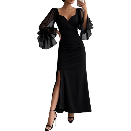 Enhance your party wardrobe with this versatile Women's Dress. Perfect for both everyday wear and special occasions, this solid color dress exudes elegance and style. The high-waisted design and flowing hem accentuate your figure, showcasing your unique charm.