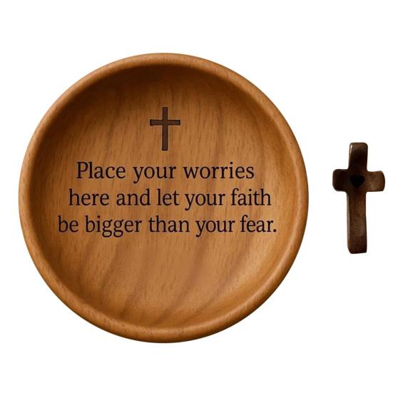 Ideal for adorning a Bible study room, prayer space, or bedside table, this hand-carved bowl is a poignant reminder to trust in God's peace and let go of worries. Whether used for personal reflection, grief support, or as a baptism or commemorative gift, this spiritual keepsake embodies the essence of faith and healing.