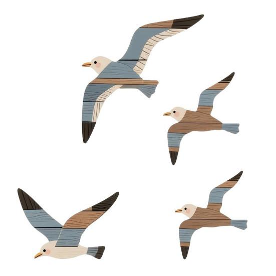 4Pcs/Set Seagull Wall Pendant Bright Feather Color Woodcarving Artwork Hand-painted Seagull