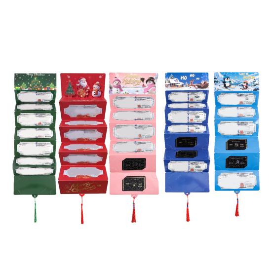 Featuring a practical layout, this Christmas wallet envelope includes 10 separate slots for organizing gifts or holiday cards of varying denominations. This thoughtful design prevents cash and cards from getting mixed up, making it perfect for distributing gifts to multiple recipients in an organized manner. The innovative "Christmas Surprise Cash Rack" concept combines storage functionality with a visually appealing arrangement, creating a delightful surprise when the recipient opens the envelope.