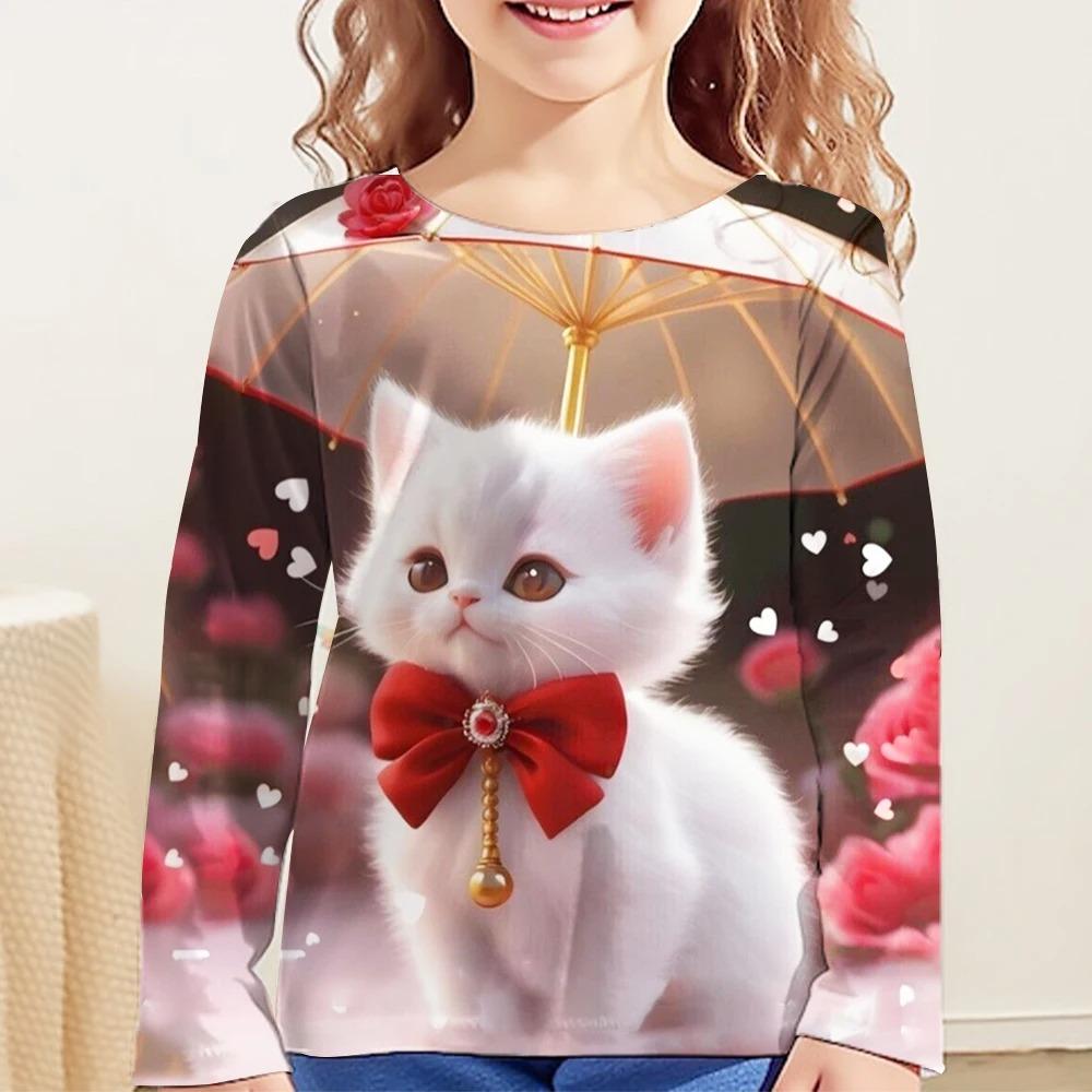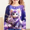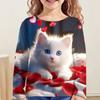 Children's Cute Cat 3D Digital Printed Girl Fashion Trend Round Neck Long Sleeved T-shirt