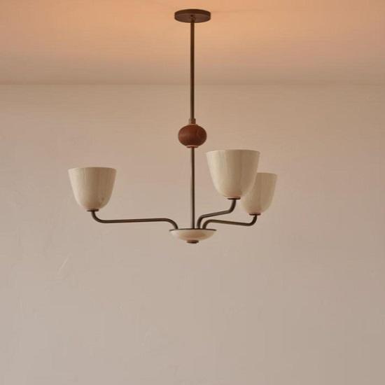 Bring a touch of timeless elegance to your interior with this handcrafted 5-arm ceiling chandelier. Featuring a refined combination of matte black metal arms, warm wood accent at the center, and cream-colored ceramic shades, this fixture blends mid-century modern design with minimalist sophistication. Ideal for dining rooms, living spaces, or entryways, this piece creates a cozy, ambient light that elevates any setting.