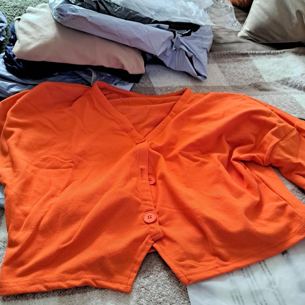It doesn't look like in the order picture. Expected a cardigan. It's made of synthetic material and too short. The color is okay.