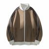 Retro College Style Cardigan Sports Style Loose Hoodie Casual Color Jacket Stand Collar Striped Jacket