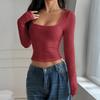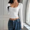 Women's Fashionable Solid Color Long Sleeved Square Neck Slim Fit Sexy Base Shirt T-shirt Top