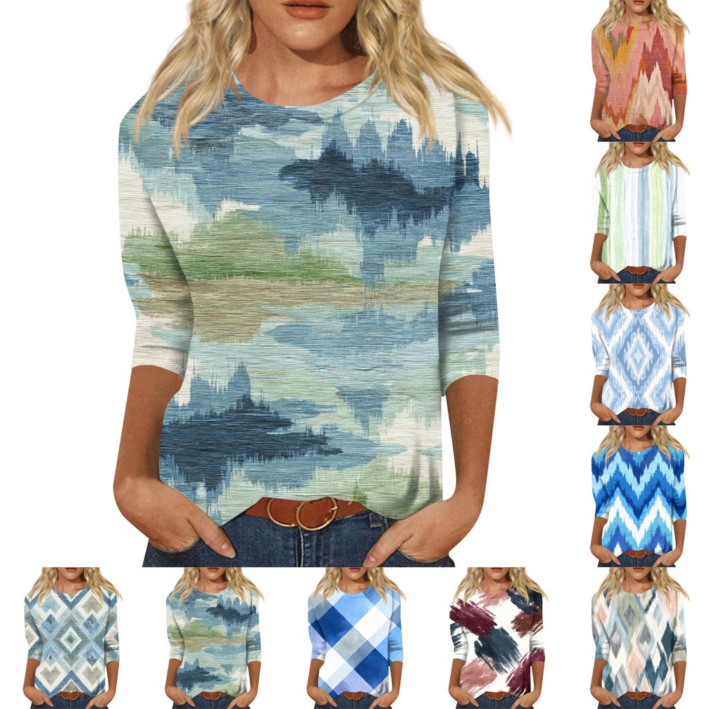 Women's Fashion Casual Round Neck Three-quarter Sleeve Gradient Print T-shirt Top — buy online with free worldwide shipping!