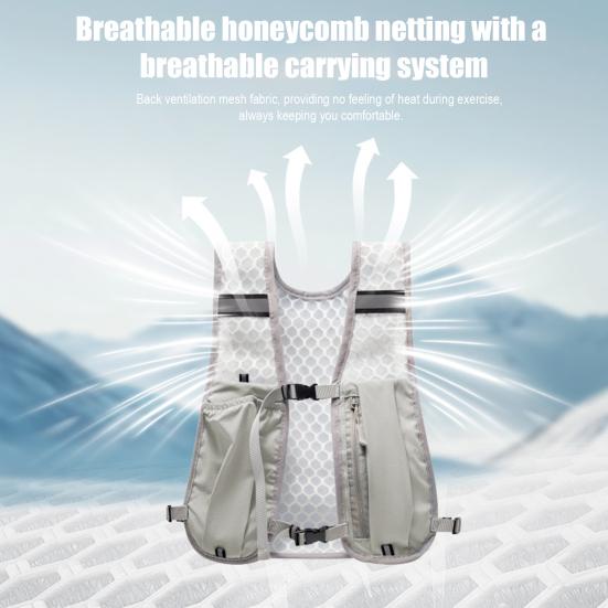 Introducing our high-quality vest backpack, designed for outdoor enthusiasts seeking comfort and functionality. Crafted from breathable mesh fabric, this lightweight vest features a sturdy silent zipper for smooth operation. The spacious rear compartment offers ample storage for all your essentials.