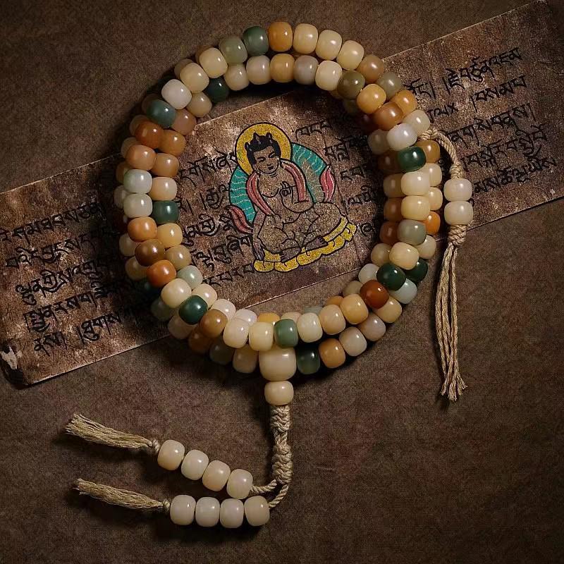 Bodhi Seed Ethnic Multi-Treasure Candy Beads Bracelet - Multi-Strand 108 Buddhist Prayer Beads Bracelet
