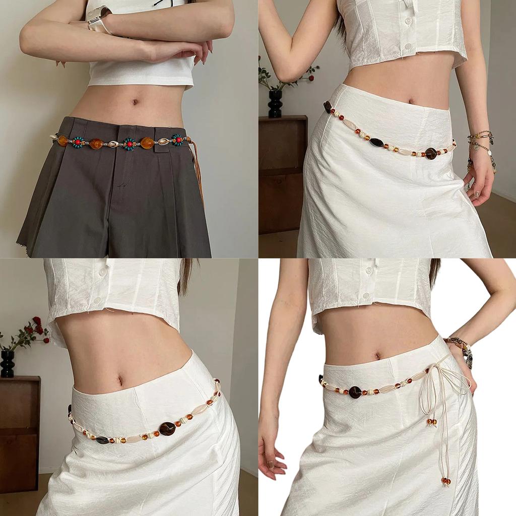Adjustable Bohemian Braided Waist Rope with Beaded Design Waist Jewelry for Dresses and Skirts Wax Rope Accessory