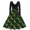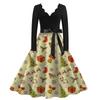 Ladies Casual Fashion V-Neck Long Sleeve Christmas Print Vintage Dress
