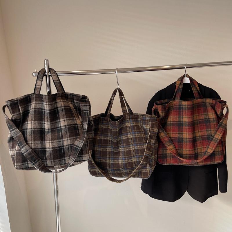 New autumn and winter woolen plaid tote bag women's leisure large-capacity college style shoulder bag underarm bag — buy online with free worldwide shipping!