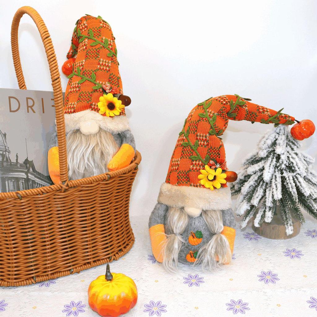 Pumpkin Sunflower Gnome Figurine - No-face Elf Ornament for Harvest Festival Window Display — buy online with free worldwide shipping!